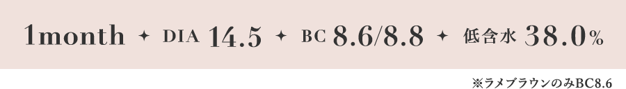 -5.50~-10.00(0.50単位)DIA(直径) 14.5mm 着色直径 13.8mm BC(ベースカーブ) 8.8mm 含水率 38.0% 鋳型製法 キャストモールド製法 その他 UVカット / モイスチャー 数量 1箱1枚入り 選任製造販売元 株式会社El Dorado 区分 高度管理医療機器 製造国 韓国製 販売元・広告文責 株式会社Lcode
