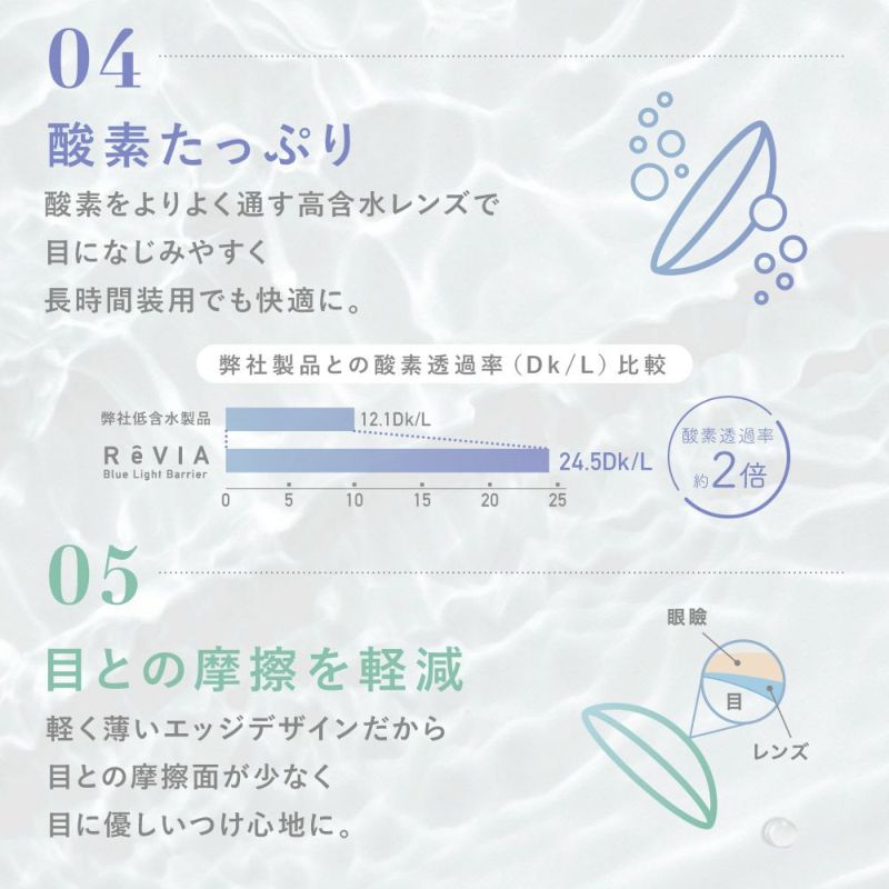 ReVIA Blue Light Barrier 1day DIA14.2 BC8.7 高含水55% ±0.50~-10.00 ブルーライトカット 紫外線カット うるおい成分
