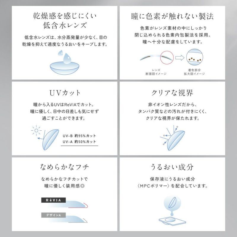 -5.50~-10.00(0.50単位)DIA(直径) 14.1mm 着色直径 12.8mm BC(ベースカーブ) 8.6mm 含水率 38.0% レンズ製法 キャストモールド製法 その他 UVカット/モイスチャー 数量 1箱2枚入り 製造販売元 Pegavision Japan株式会社 区分 高度管理医療機器 製造国 台湾製 販売元 株式会社Lcode
