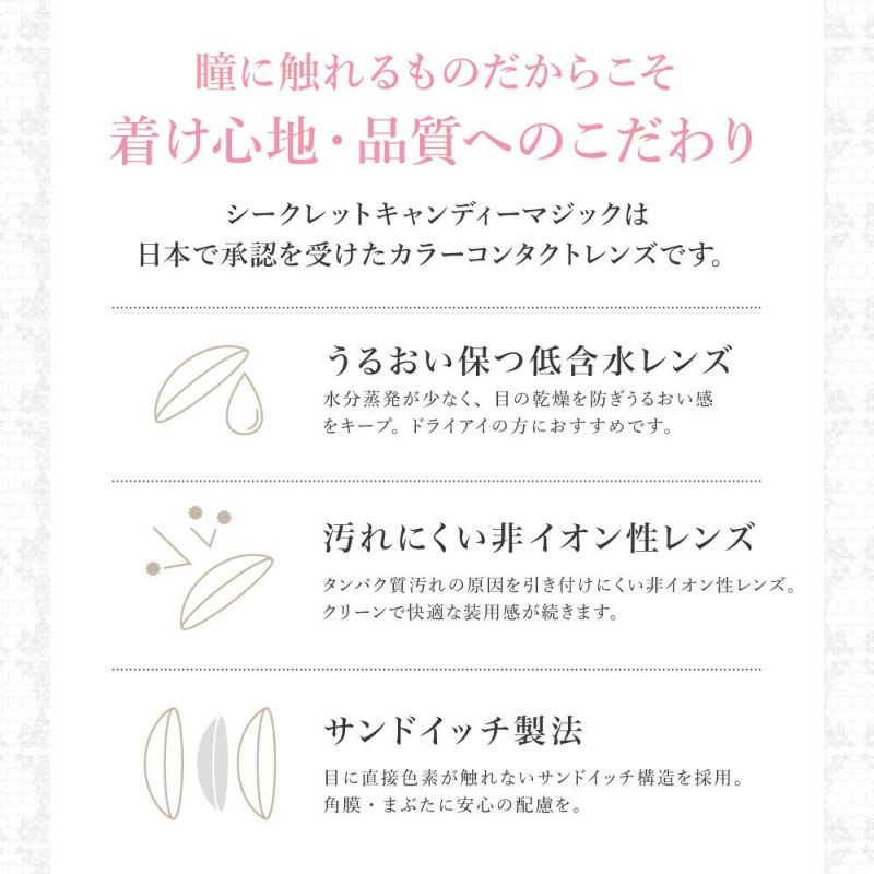 商品名 シークレットキャンディーマジック マンスリー 販売名 シークレットマンスリー 使用期限 開封後1ヶ月 カラー プルモグレー 販売度数 -0.75~-5.00(0.25単位)