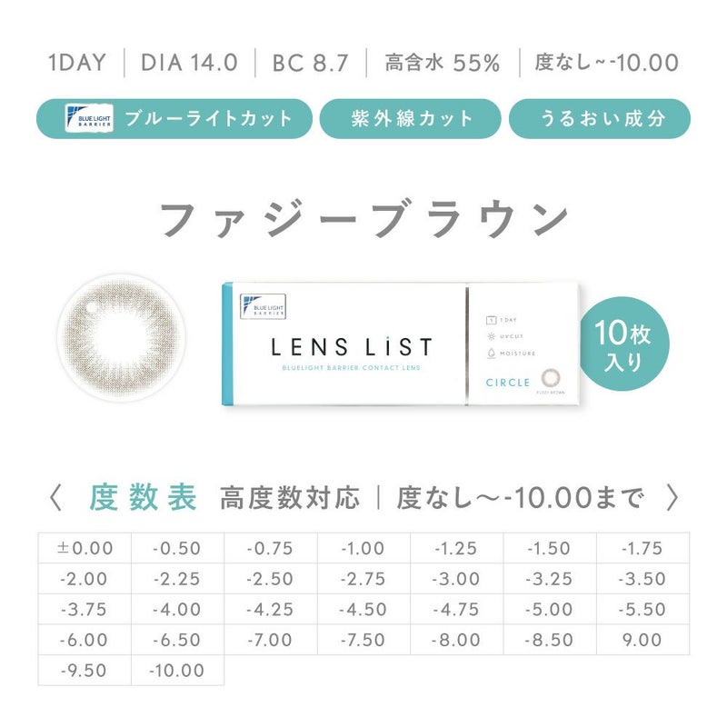 商品名 レンズリスト サークル 販売名 レンズリストワンデーⅡ 使用期限 開封後1日 カラー ファジーブラウン
