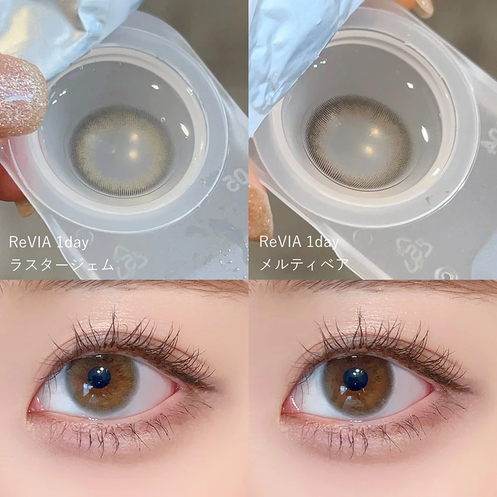 使用期間 ワンデー DIA(レンズ直径) 14.1㎜ 着色直径 13.0㎜ BC(ベースカーブ) 8.6㎜ 含水率 58% 度数 ±0.00 ~ -10.00 ラスタージェムはレヴィアNo.1人気のカラーレンズです。