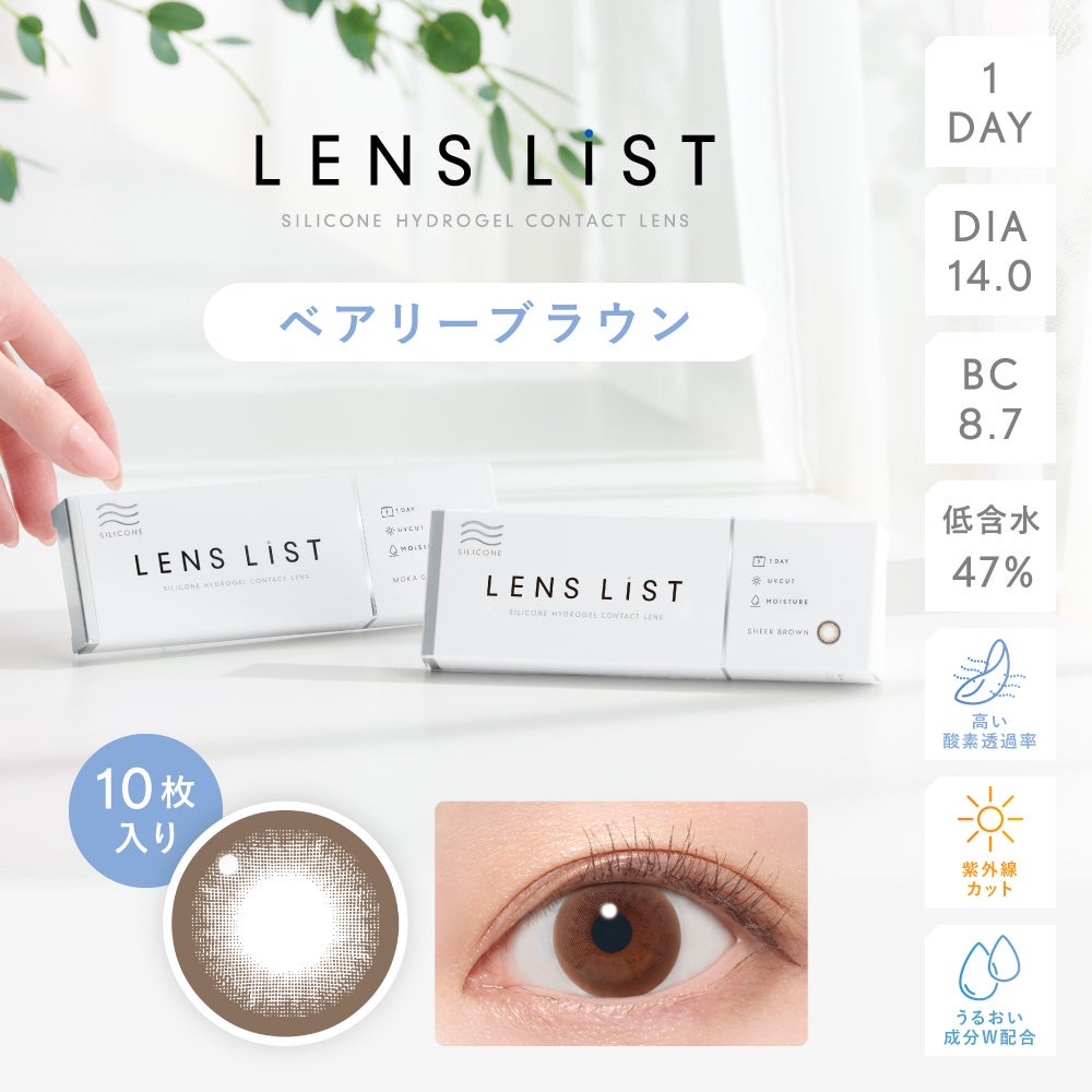 LENS LiST シリコーン 1day ベアリーブラウン 10枚入り レンズリスト サークル カラコン