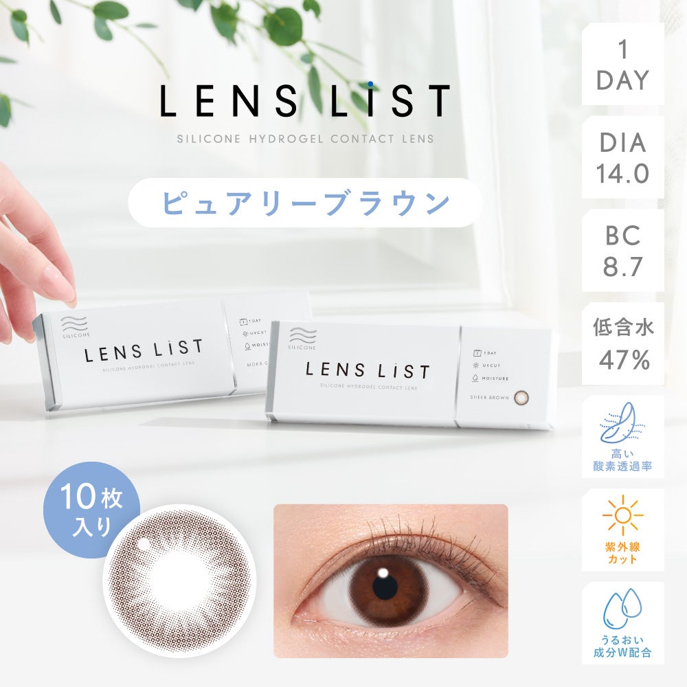 LENS LiST シリコーン 1day ピュアリーブラウン 10枚入り レンズリスト サークル カラコン